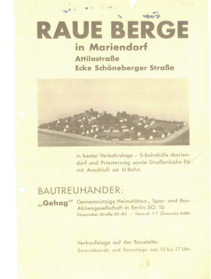 Für die Bebauung im Winkel Schöneberger Str. (heute Röblingstraße) und Attilastraße wurde ein Bauprospekt für Einfamilien- und Reihenhäuser aufgelegt.