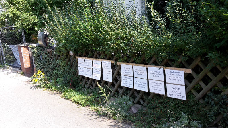 Egal ob Marienhöher Weg, Attilastraße, Röblingstraße oder entlang der Kleingartenanlage - überall hängen seit 2019 bunte Protestplalate und werden an die aktuellen Umstände angepasst!