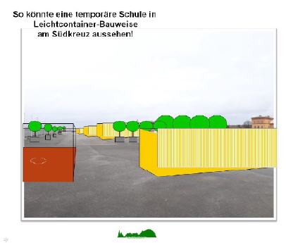 Dieser Raumbedarf wäre nach unserer Auffassung auf "intelligentere" Weise, beispielsweise mit dieser temporären Schule am Südkreuz, auch anders zu schaffen!
