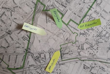 Im Bereich des Weges entlang der heutigen Kita, also an der Grenze zur Kleingartenanlage, war damals ein Splittergraben neben der Eschenallee ausgehoben, in dem die Bewohner nach Erzählungen bei Beschuss Schutz gesucht haben.