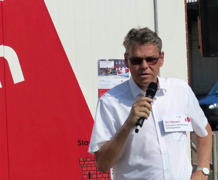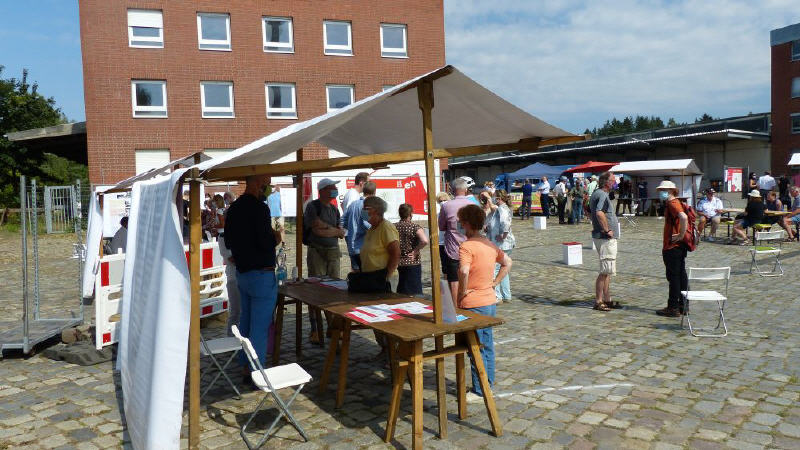 ++ Am 15. August 2020 wurde der sogenante "Stadtbaukasten" auf dem zukünftigen Neubauareal durch Baustadtrat Oltmann eröffnet.