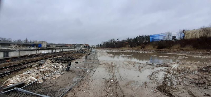 ++ Februar-April 2022 Der geschlossene Baumarkt ist leergeräumt und abgesperrt. Im hinteren Teil des Geländes beginnt bereits der Abriss der alten Güterhallen.