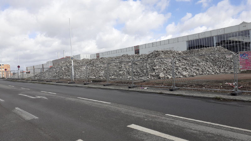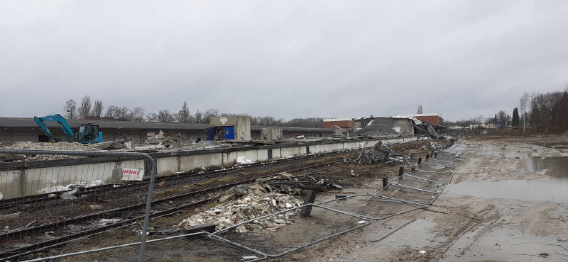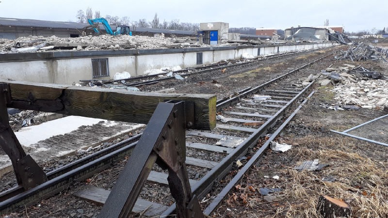 Im hinteren Teil des Geländes beginnt bereits der Abriss der alten Güterhallen.