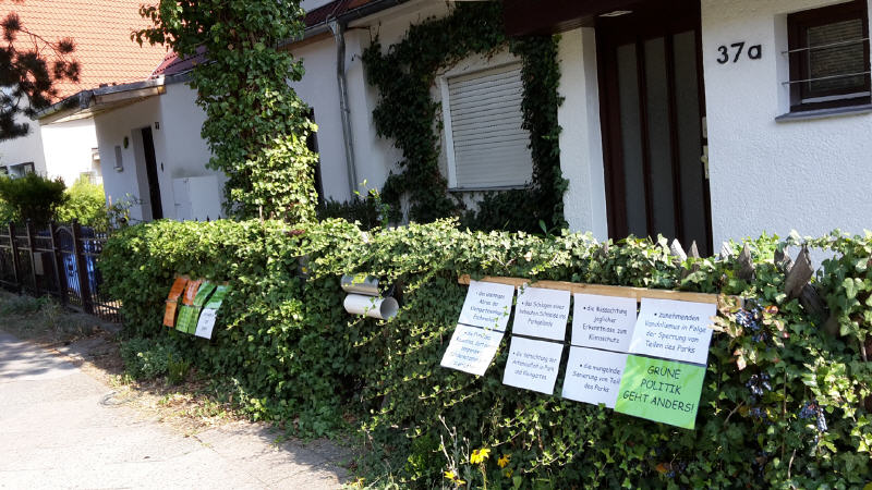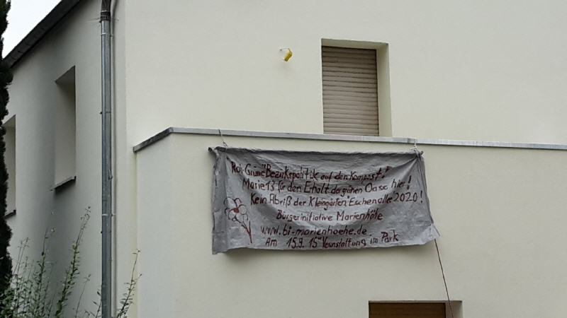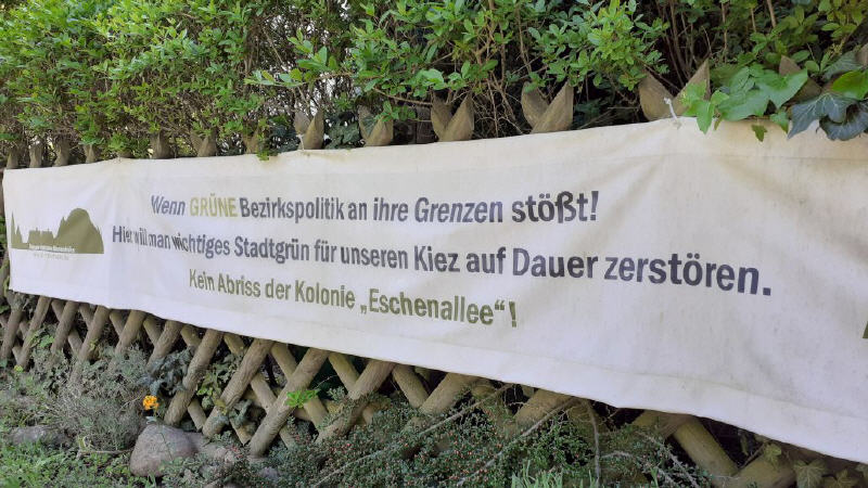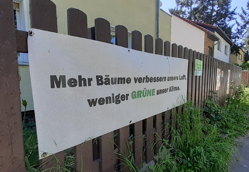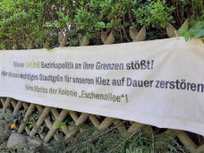 Egal ob Marienhöher Weg, Attilastraße, Röblingstraße oder entlang der Kleingartenanlage - überall hängen seit 2019 bunte Protestplalate und werden an die aktuellen Umstände angepasst!