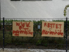 Ob ausgedruckt, laminiert, selbst gepinselt- viele Nachbarn der Marienhöhe bringen seit Gründung der Bürgerinitiative Ihren Unmut zum Ausdruck und protestieren!